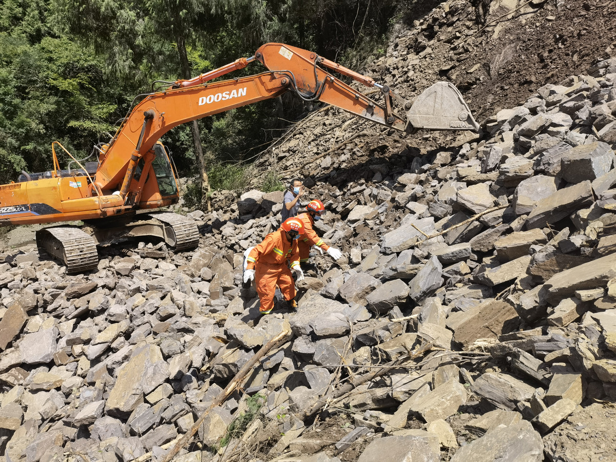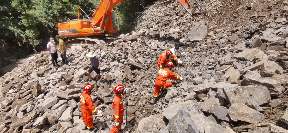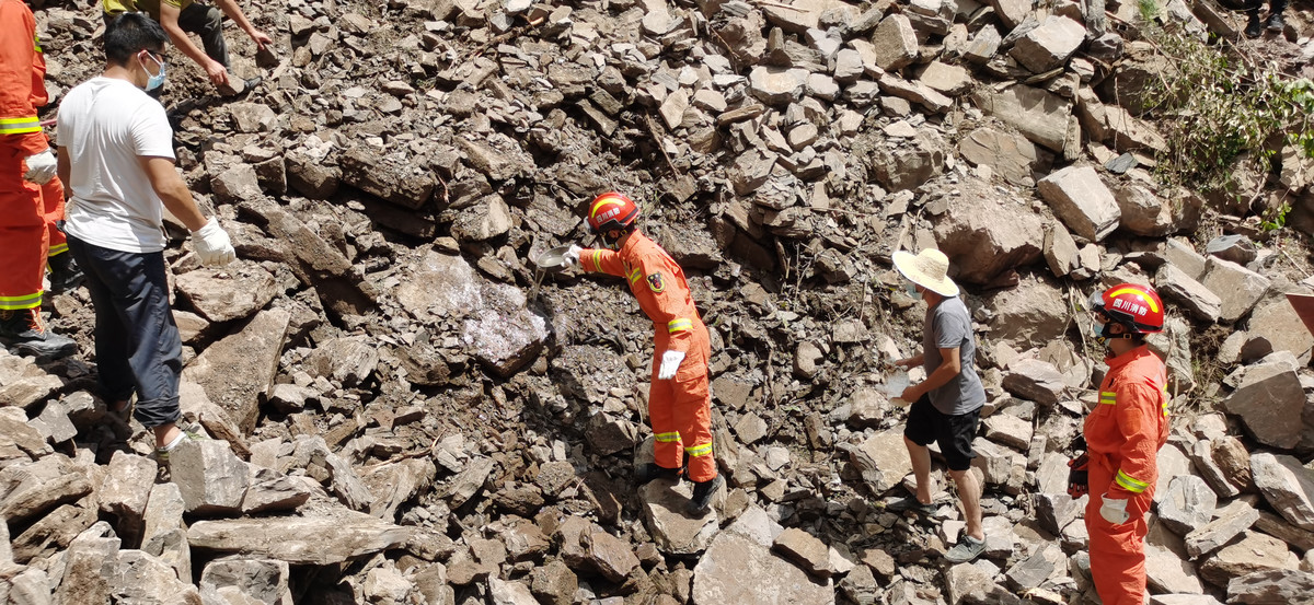 消防员到场时,通过勘察发现,事故现场整个山坡都被矿山爆破后的乱石所覆盖。根据现场前期救援情况,此时被埋人员已经死亡。