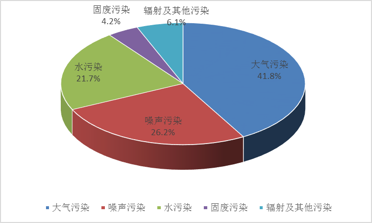大气污染问题最突出。7月,群众反映大气、噪声、水、辐射及其他污染问题分别占污染举报总量的41.8%、26.2%、21.7%、6.1%,反映固废污染问题占污染举报总量的4.2%,环比上升13.6%。其中,大气污染中,恶臭异味占53.6%、烟粉尘占19.9%;噪声污染中,工业噪声占46.5%、社会生活娱乐噪声占30.4%;水污染中,养殖废水占39.4%、工业废水占21.2%。