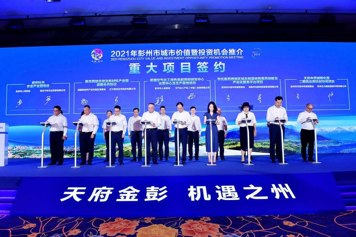 8月19日,2021年彭州市城市价值暨投资机会推介会举行,会上,西部区域总部基地暨医药创新及产业化服务平台、天府中药城高品质科创空间项目、盛世牡丹农业产业园等16个项目签约,总投资277.1亿元。