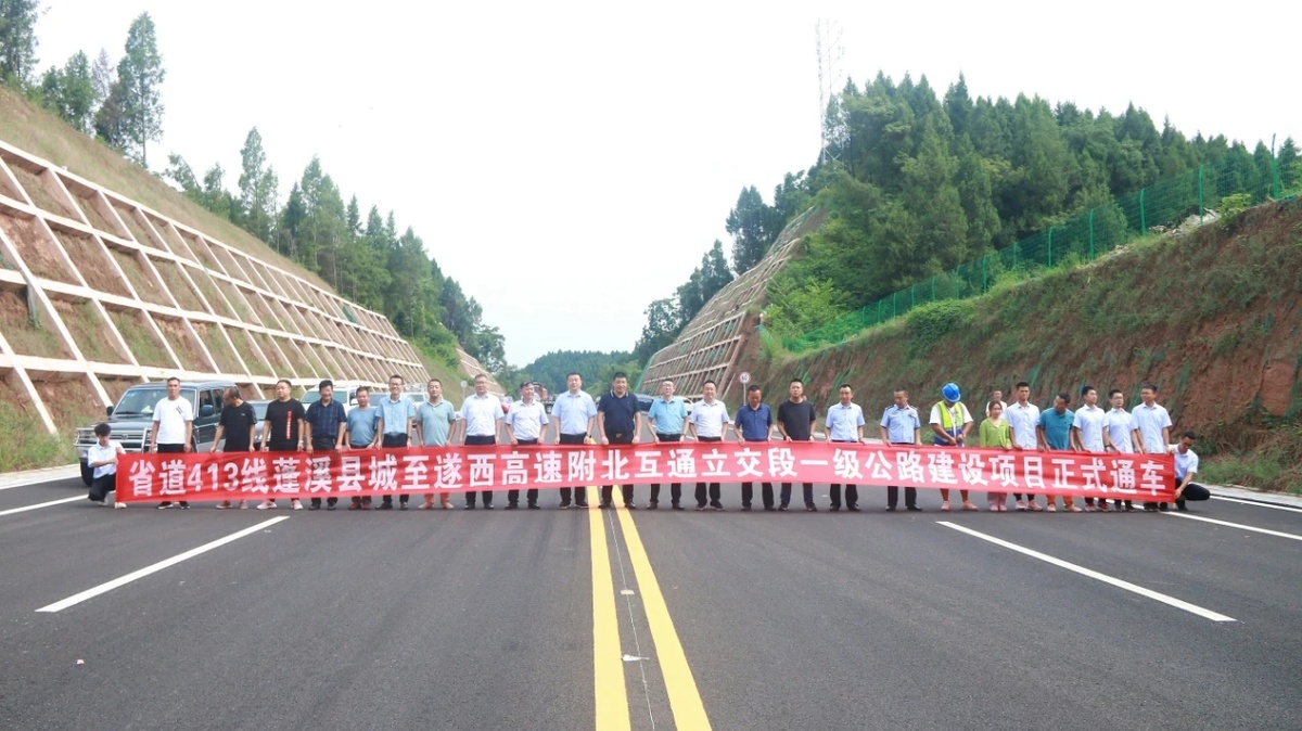 8月20日,省道413线蓬溪县城至遂西高速附北互通立交段一级公路通车仪式在遂宁市蓬溪县赤城镇田家坝Ⅱ号桥举行。