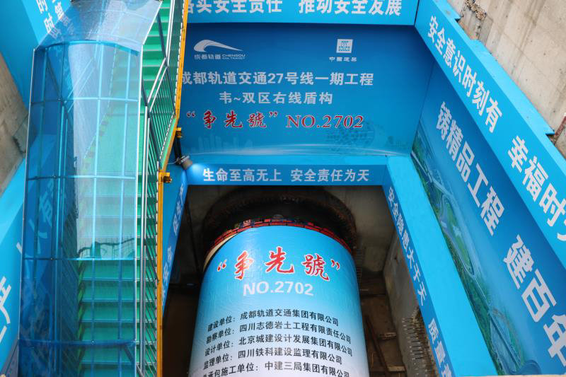 8月23日,随着“争先号”NO.2702盾构机刀盘缓缓转动,成都轨道交通27号线一期工程韦家碾站至双水碾站区间(以下简称“韦~双区间”)右线盾构顺利始发,标志着27号线一期工程正式进入盾构施工阶段。至此,成都轨道交通在建线路均已进入盾构施工阶段。