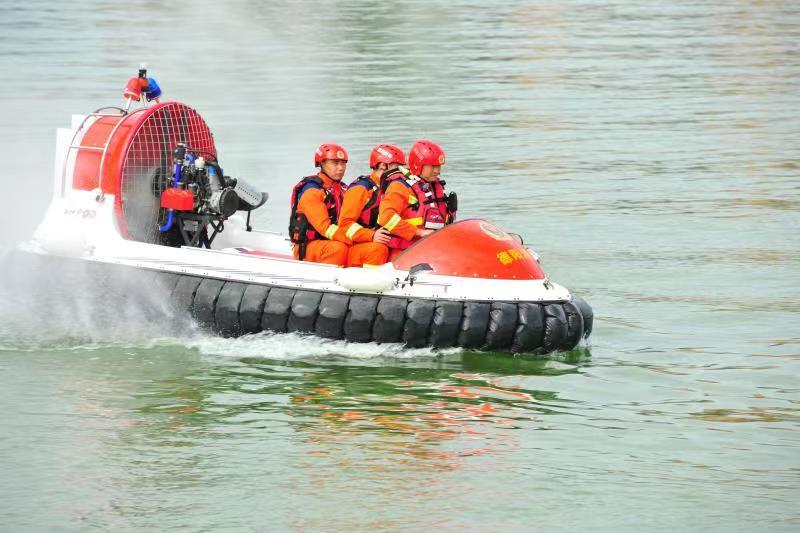 参演消防指战员依次开展了城市内涝处置、无人机定点抛投和水面机器人联合救援、动力艇离心力救援、翻舟自救、复杂水域气垫船孤岛救援、坠河车辆浮力起吊演示等六个实战科目。特别是在水域事故处置、内涝疏转救助、孤岛救生等重难点科目中,综合运用了无人机、气垫船、水面救生机器人、管供式潜水、自携式潜水等专业水域救援装备,采取无人机抛投、水面水下搜救等技战术措施,高效、快捷地完成应急救援任务。