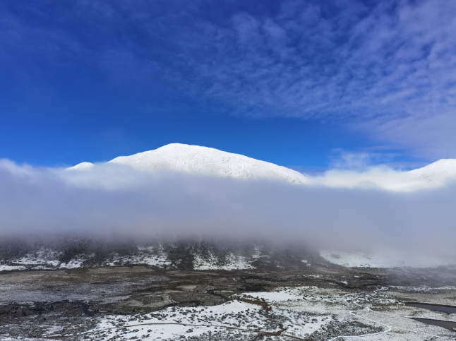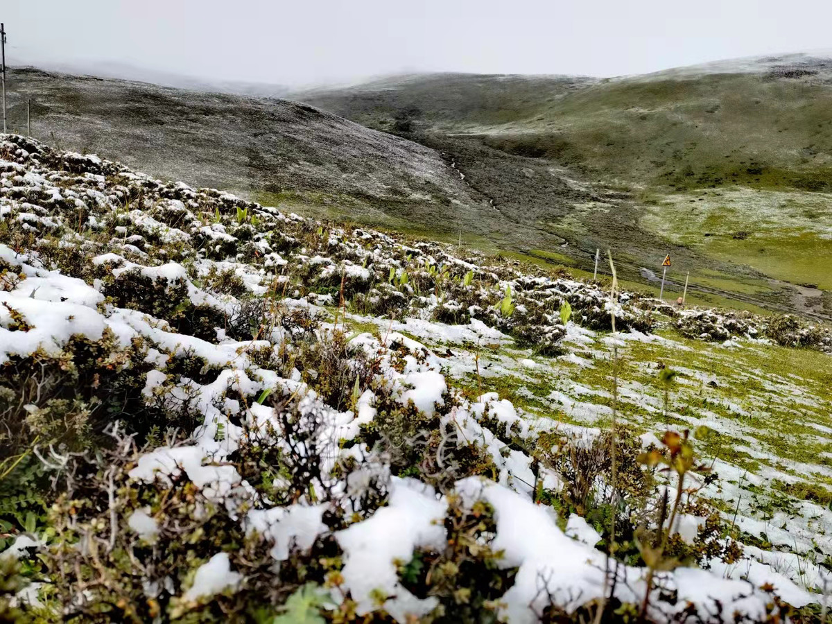 8月27日,甘孜州内大部地区雨后初霁,高海拔地区经过持续降雪,多地加上雪景装扮,呈现出8月不一样的景色。