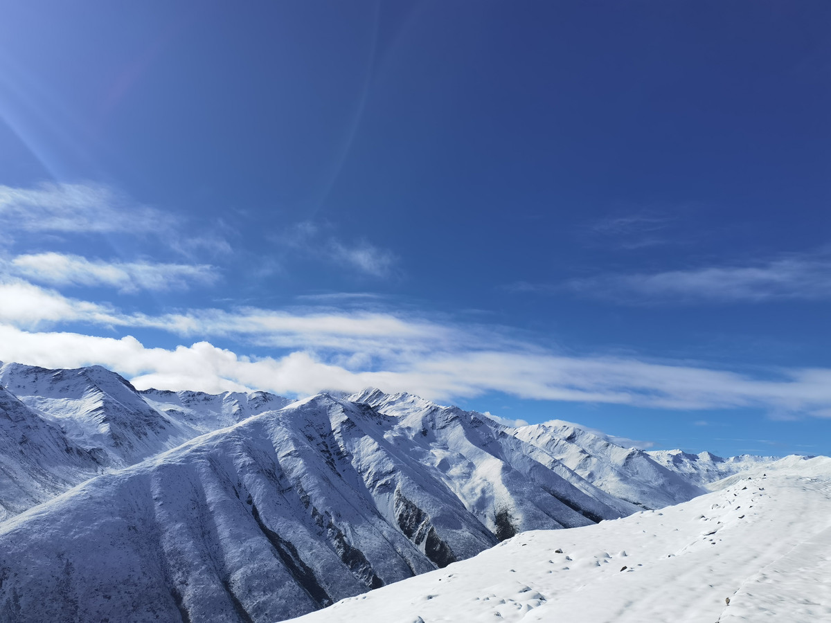 绿油油的草地批上白色外衣,青山带上白色雪帽。木雅圣地景区背靠折多山,蓝天下白雪皑皑,积雪覆盖;在康定木格措景区,蓝天碧湖间,青山白雪交相呼应;道孚县亚拉雪山气势雄伟,白雪覆盖,连绵不绝;在高海拔理塘县,积雪湮没的草地,随着气温回升在逐步融化。