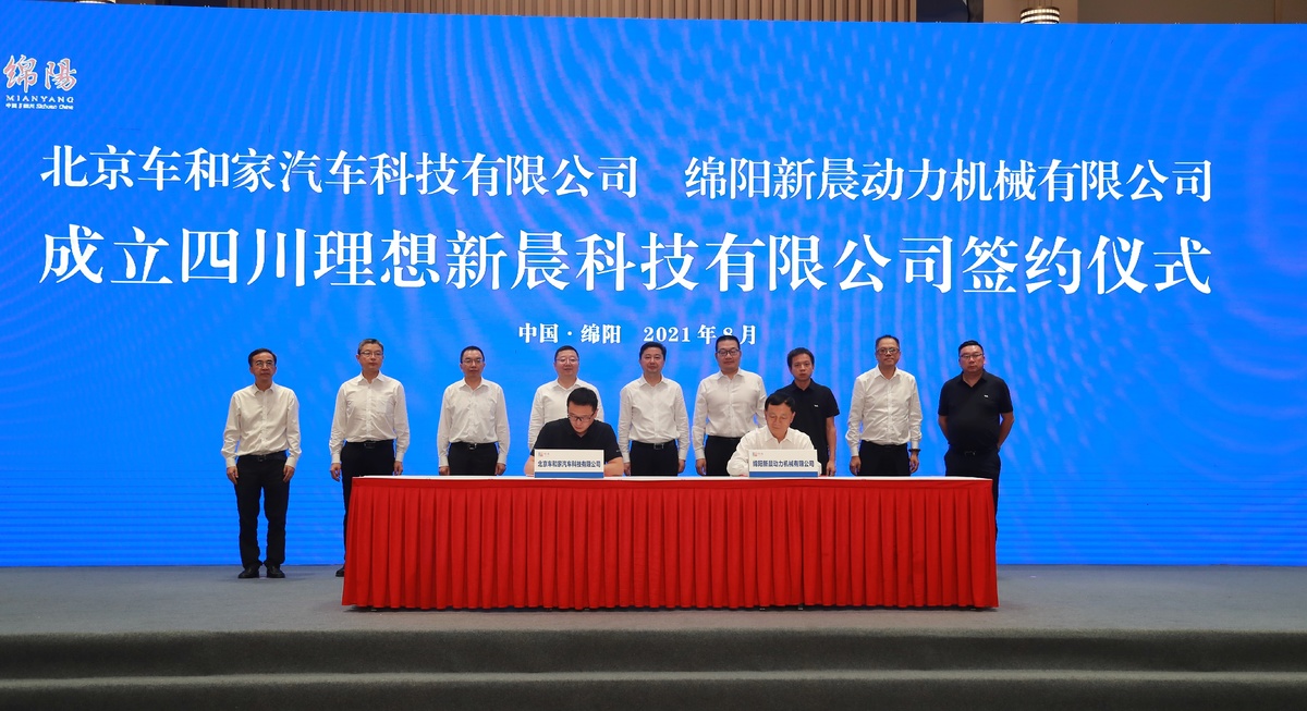 在当天的签约仪式上,北京车和家汽车科技有限公司与绵阳新晨动力机械有限公司签订《关于成立四川理想新晨科技有限公司的合资协议》,将研发和生产理想汽车新一代增程器;绵阳高新区与四川理想新晨科技有限公司签署《理想汽车增程器研发及生产基地项目投资合作协议》。