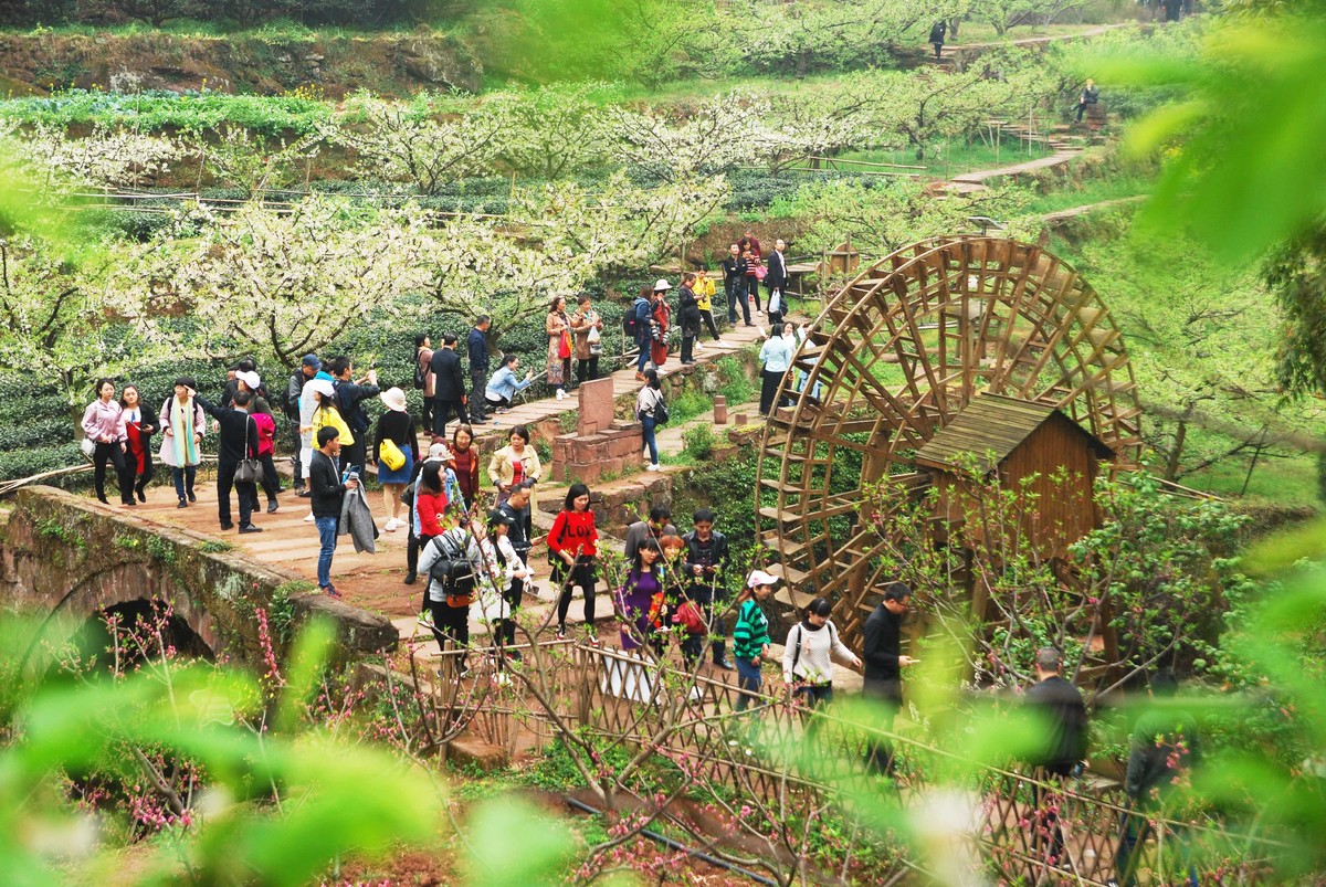 环境变好后的乡村,成为了城里人争相前来游玩之地,图为游客在丹棱县幸福古村游玩(丹棱县委宣传部供图)