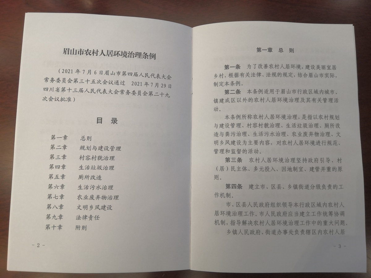 图为眉山市农村人居环境治理条例内页