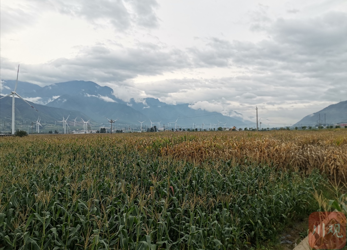 初秋时节,强烈的阳光照射安宁河谷,西昌玉米现代种业园区旁,一台台风力发电机矗立山间,迎风旋转。