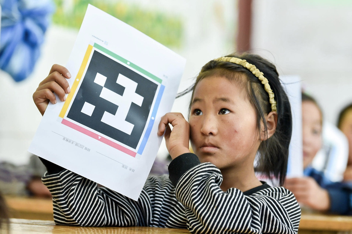 博史么惹合是凉山彝族自治州布拖县特木里乡木尔小学三年级的学生。9月1日,她发现课堂变得不一样了:“老师给每个同学都发了一张A4纸。中间有个二维码,老师说是代表每个人的名字。码四周有红、黄、蓝、绿四种颜色。提问时,只需把代表正确答案的颜色向上举起,老师很快就知道谁答对了,谁答错了……”