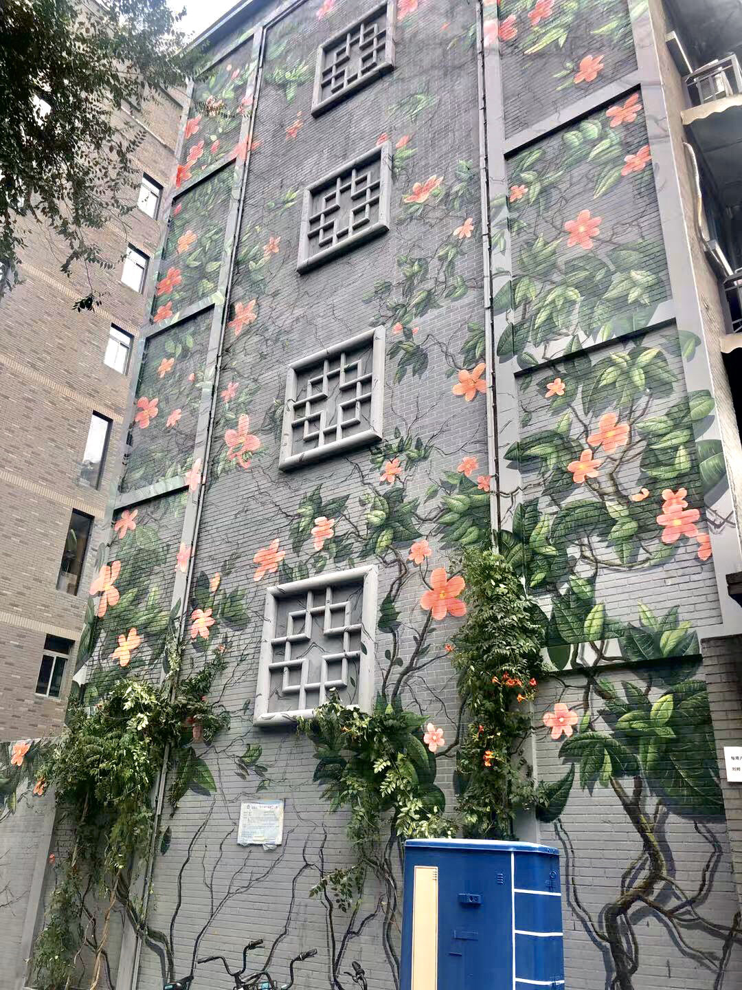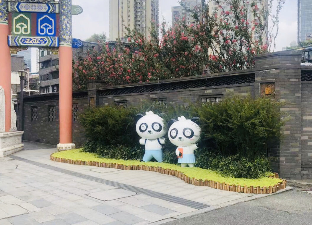 9月1日,开学第一天,成都市七中育才学校(水井坊校区)门外马路上,师生们发现了新变化:水井坊道旁绿植葱郁,各色鲜花娇艳,呆萌的“熊猫”彩绘上墙。