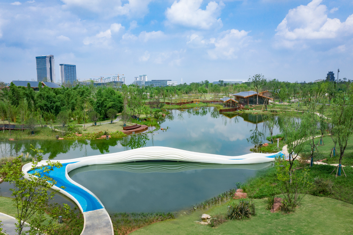 这座3D打印桥命名为“流云桥”,落成于成都驿马河公园卧云泽景观湖之上,整桥全长66.8米,其中3D打印部分桥长21.58米、最宽处8米、最高处2.68米——这座景观桥梁是目前全球最长的高分子材料3D打印桥。