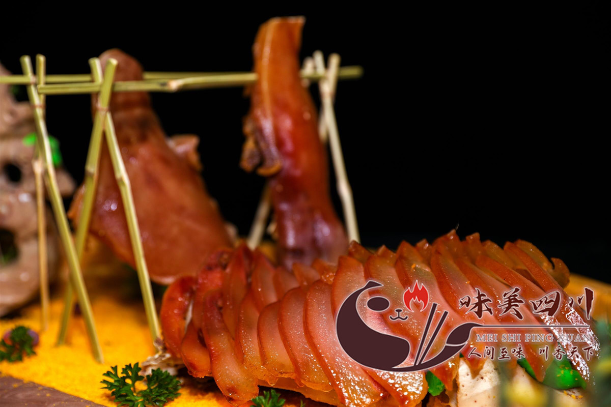即三星堆腌猪脸,是融入三星堆文化尤其是祭祀面具文化,并结合先辈的烹饪技巧和独特的烹调方式而研发的一道具有标志性地方特色的美食。该菜品既是别有风味的四川腌制美味,肥而不腻、软香耐嚼,又蕴含着厚重的历史元素,浸透了中华文化的馨香。