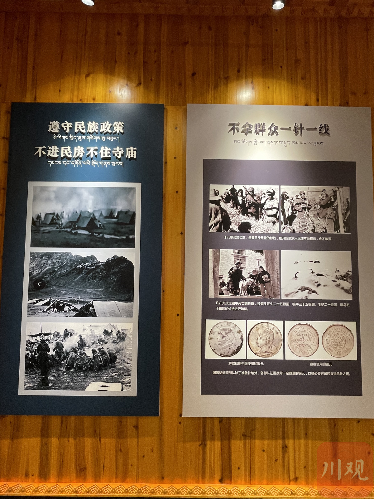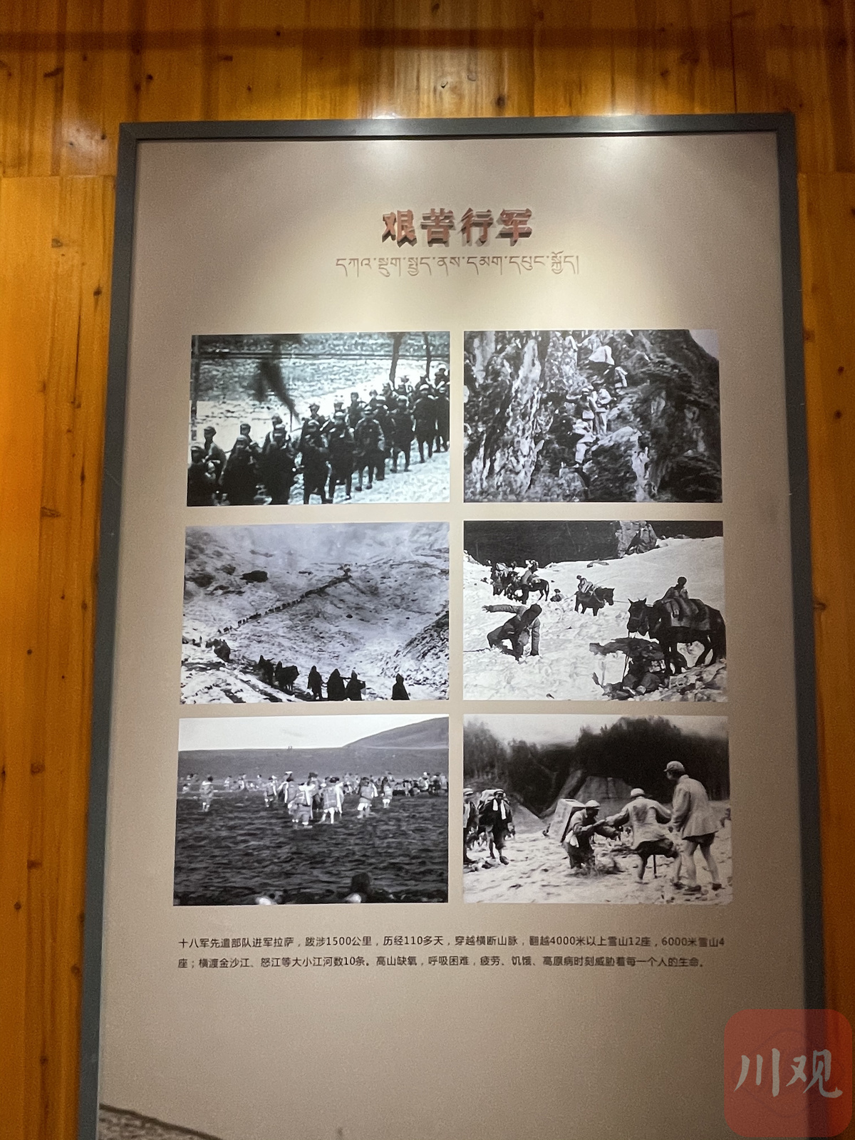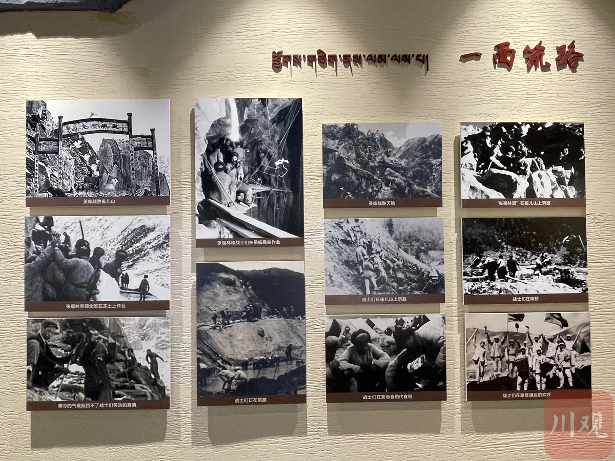 经过高耸的“川藏公路十八军英雄纪念碑”,拾级而上,“十八军进藏雀儿山纪念馆”和“张福林烈士纪念馆”分列两旁。走进“十八军进藏雀儿山纪念馆”,“雪域天路筑忠魂”七个金色大字印入眼帘。整个纪念馆分为八个单元:忠信、忠勇、忠义、忠仆、忠情、忠骨、忠诚、忠绩。一幅幅老照片、一件件珍贵的藏品,十八军将士在雀儿山奋斗的身影随处可见。