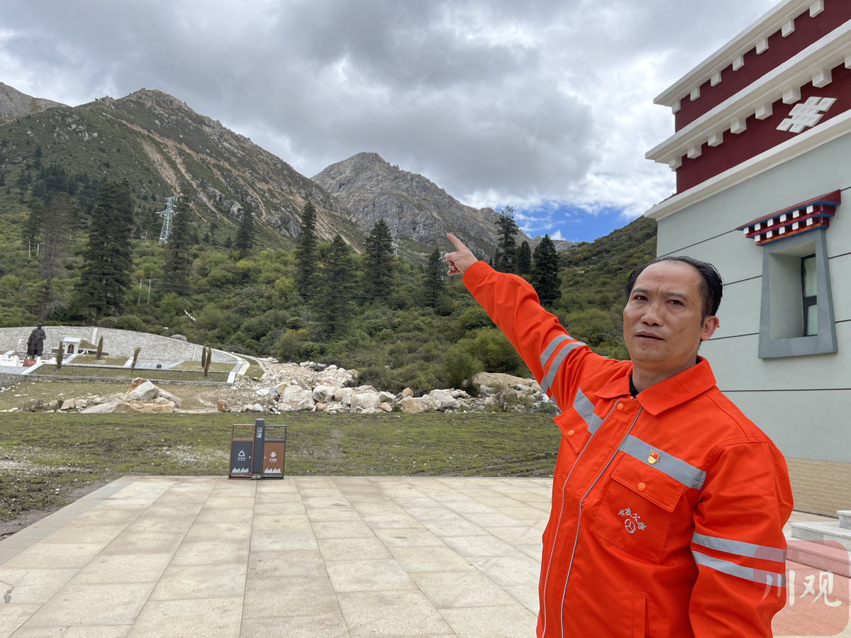“以前的路是从这里走,在那里拐弯上山。”9月8日,在十八军雀儿山红色教育基地外,雀儿山五道班最后一任班长曾双全向川观新闻记者介绍原国道317线的路线。他手指的方向,岩石层层,山巅积雪,一条肉眼可见的公路蜿蜒山腰,山顶处有一栋方形的房子,“那就是我们以前道班的驻地,在山上,可以看到这里。”曾双全望着山顶,无比怀念。