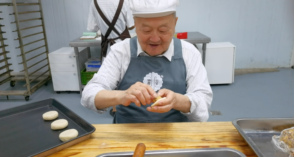 今年74岁的臧仕肃曾在耀华做了37年月饼,对手工月饼的制作流程如数家珍,年轻时候,为了在中秋前夕赶制月饼,可以一天一夜不休息。如今,已到古稀之年的他,已经告别了食品行业,过上了惬意的退休生活。