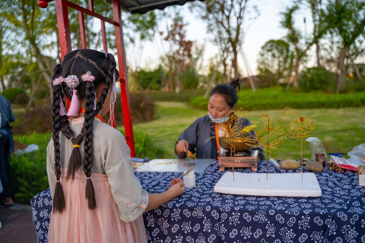 活动现场还设置了福锦编织、遂宁竹编、观音绣、胡氏剪纸、夏氏风车等传统文化展示区,以及变脸展演、汉服展示、套圈、猜灯谜等互动体验活动,让市民群众能够有所乐、有所得,了解丰富的中秋民俗民风,感受中国传统节庆魅力。