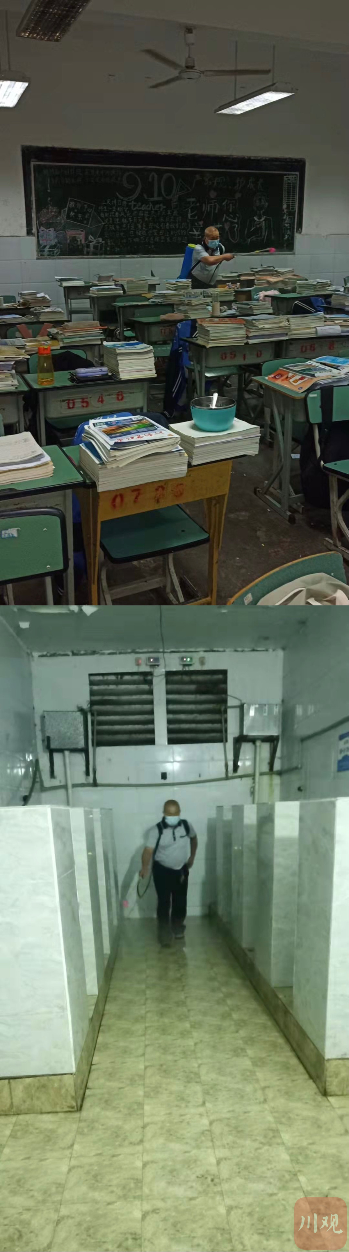 节前,学校已组织人员对全校33间教室、96个学生寝室、30余个教职工办公室进行全面消杀。校方供图