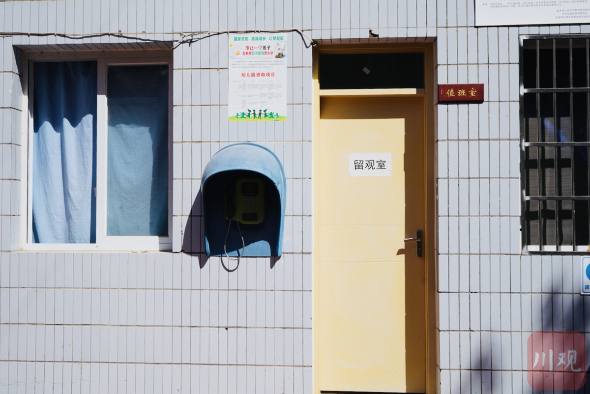 假期第一天,诺大的校园很空,但记者看到,几名学校保安仍坚守在大门口。如有学生想要进入学校,必须经过一间“体温检测室”,经由智能测温机器确认体温无误后才能入校。进入学校内,还设有几间“留观室”,便于为出现突发情况的学生提供场地。