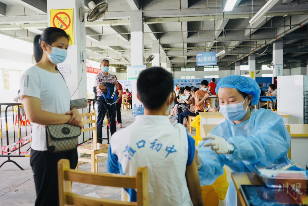 9月19日,中秋第一天,成都市金堂县金履街,数百名身着“淮口初中”校服的学生有序来到新冠疫苗临时集中接种点(淮口点)排队。“我们学校一共1700余名学生,今天打第二剂次的学生大概300人,到中秋节一过,符合接种条件的学生将全部打完第二剂次。”淮口镇初级中学校长林俊说。