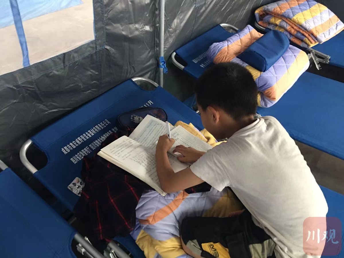 “不能看着别人为你忙撒,自己也不忍心。”在另一间帐篷里,15岁的初三女孩儿巫佳鸿正认真地做着物理资料,整齐的演算公式在洁白的草稿纸上格外醒目,犹如她笑起来脸颊上明显的酒窝。