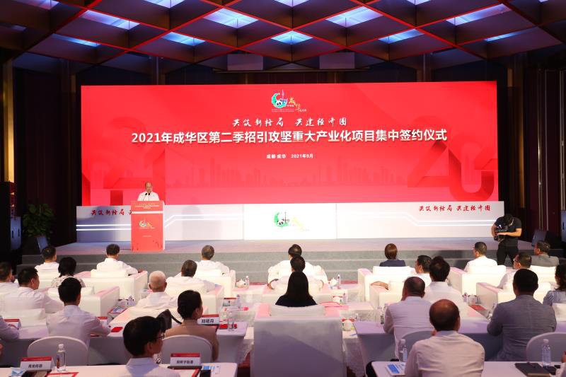 9月22日,2021年成都市成华区第二季招引攻坚重大产业化项目集中签约仪式举行。中国铁建西南投资总部、欧亚国际科创产业城、七一珺月城市综合体、国信国际电竞产业园、倍益康智能制造基地、洲际海峡能源西部总部等16个重大产业化项目进行了集中签约。