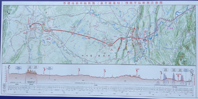 9月26日,在铁路成都站(火车北站)举行的成渝中线高铁建设启动活动上,成渝中线高铁线路平纵断面示意图首次亮相,这条新高铁的沿线站点首次公开。