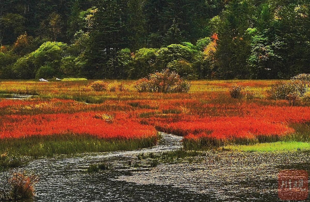 箭竹海,因湖畔箭竹丛生而得名。这里有九寨沟特有的华西箭竹、冷箭竹。在无风时,箭竹海的倒影甚是美丽,丝毫不逊色于镜海。此处也是张艺谋导演拍摄电影《英雄》的外景拍摄点之一。