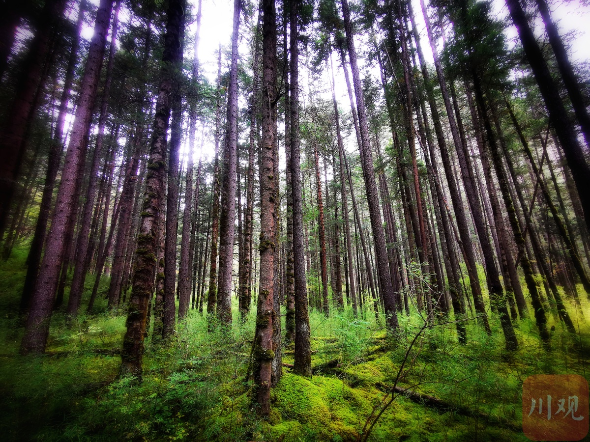 原始森林,是日则沟的最后一个景点,也是九寨沟次生林与原始森林的分界地段。面积540公倾,植被以冷杉、云杉为主,空气中负氧离子含量达每立方厘米18400个。