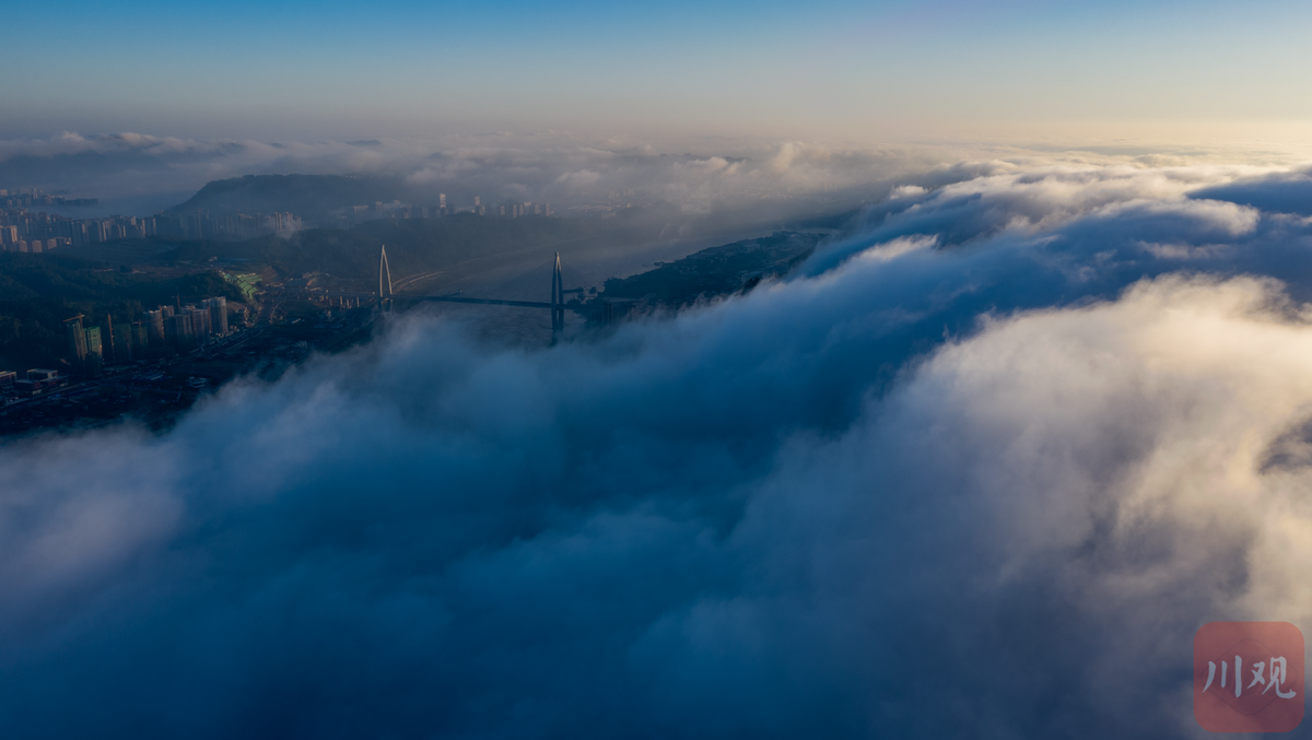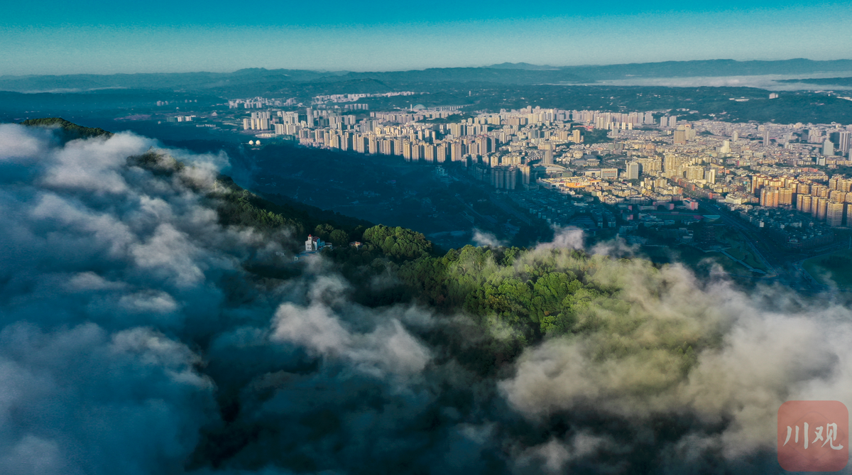 9月30日,受秋季多变天气的影响,宜宾市叙州区南广镇的山上出现了云海景观,似与仙境媲美。清晨,一波又一波的白云,慢慢地涌上来,越过连绵起伏的山峦,在山下就是城区以及东去的长江。