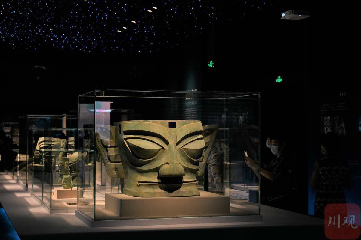 一进入展厅就可以看到三星堆遗址标志性的大青铜面具