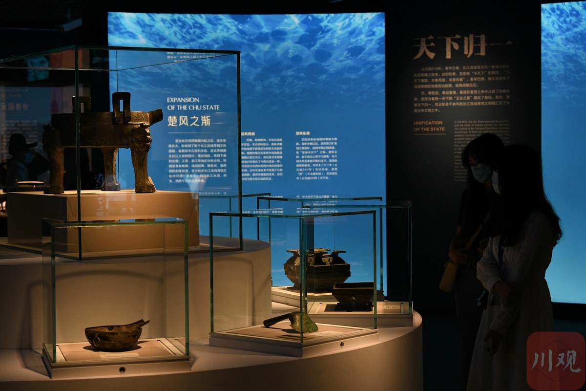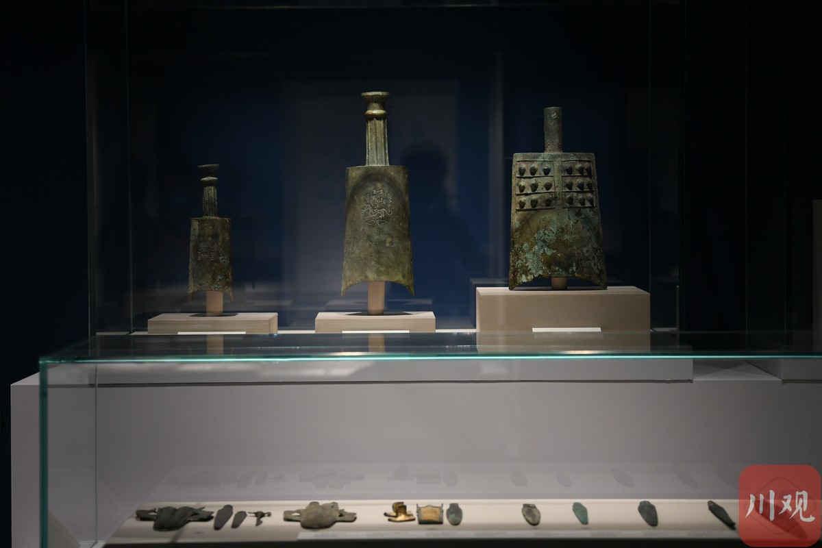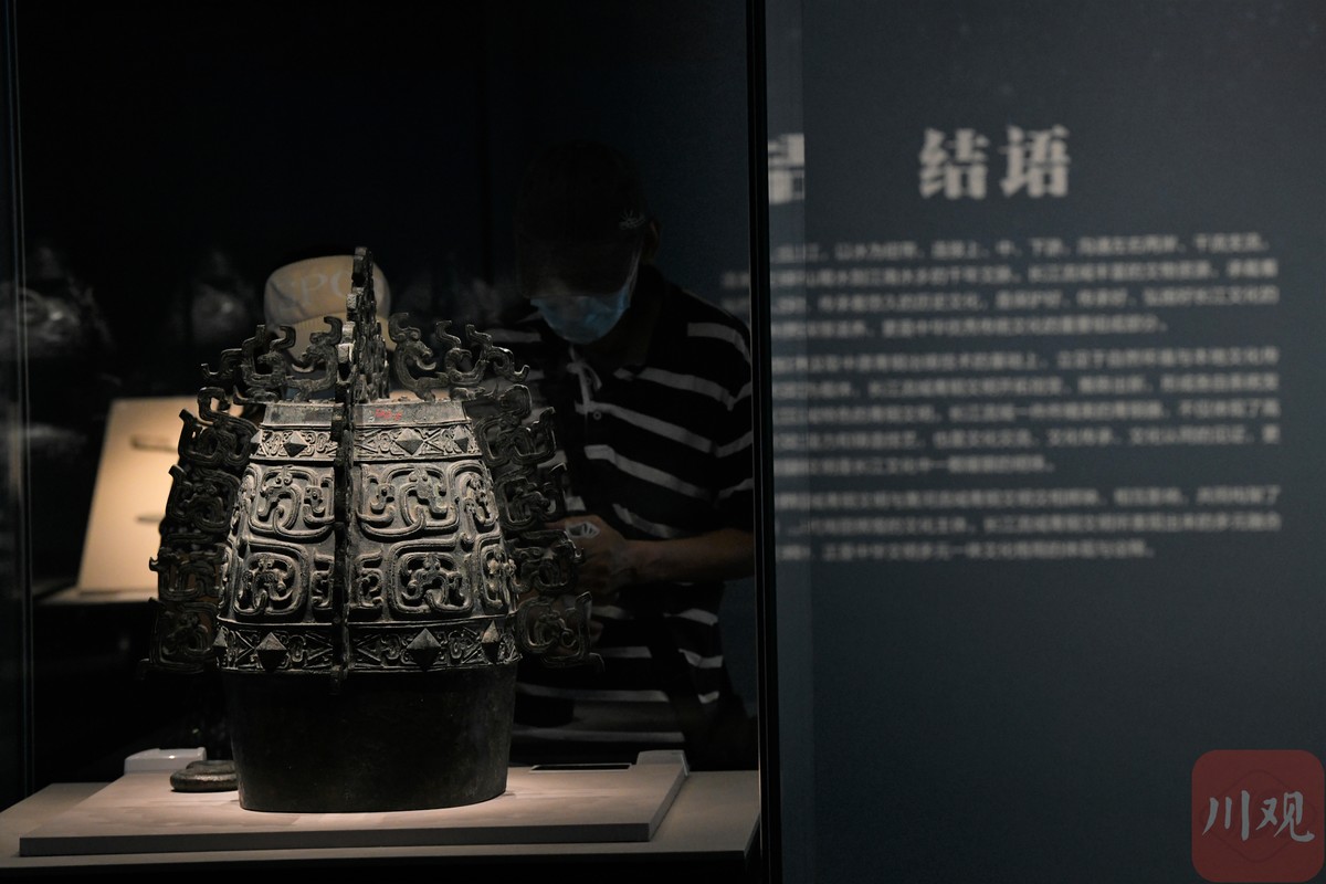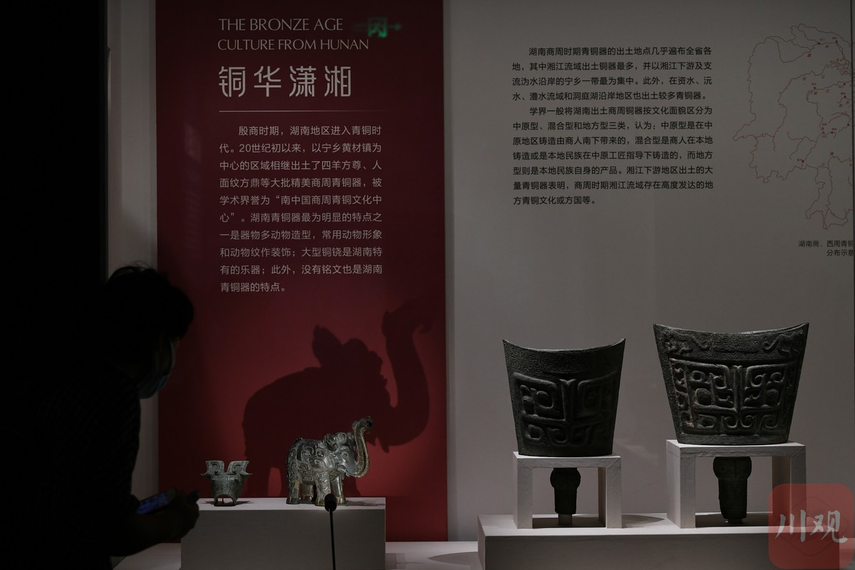 此次展览第一部分《巴蜀并辉》主要展陈了三星堆、金沙等为代表的古蜀文明和以罗家坝、涪陵小田溪为代表的巴文化;第二部分《群雄竞华》,揭示长江中下游地区青铜文明的形成及面貌,使神秘的诸侯方国浮现在眼前;展览第三部分透过长江、黄河流域青铜之间的“对话”,展现出长江文明、黄河文明的密切联系。