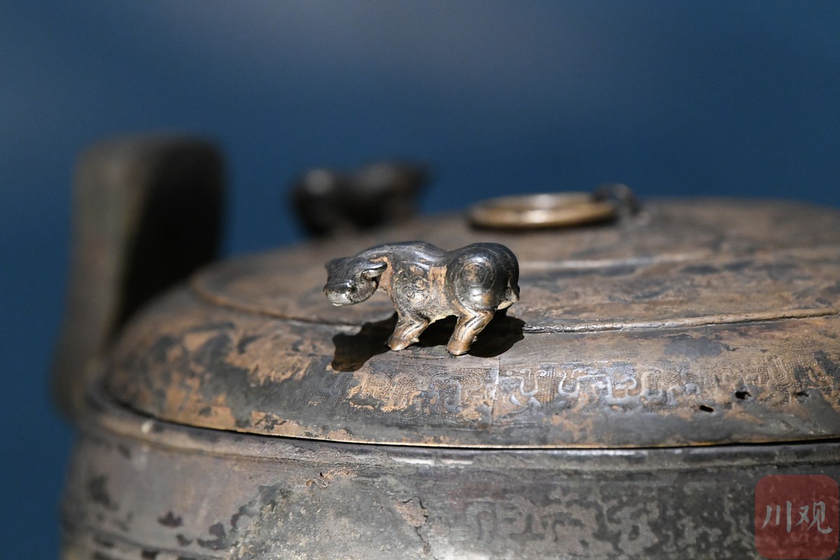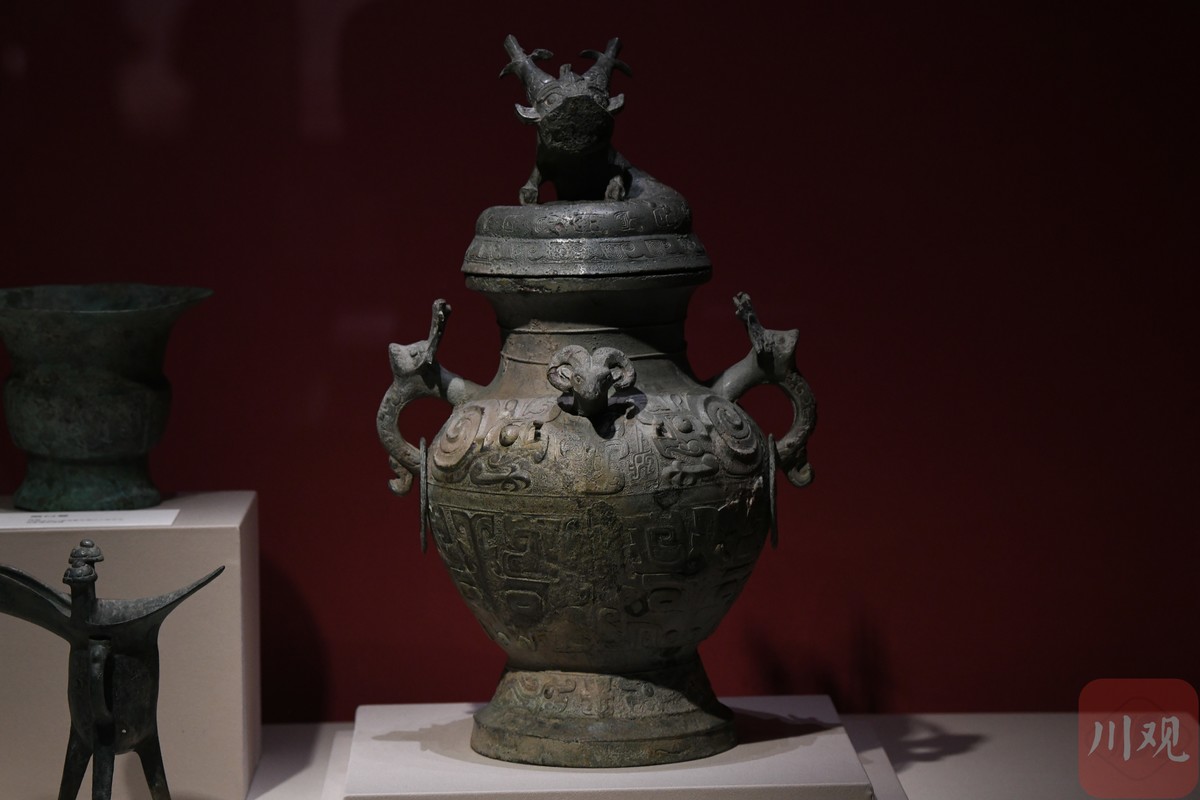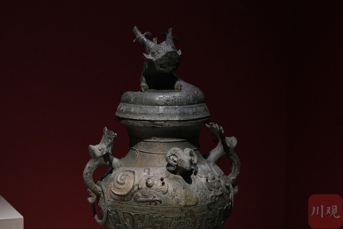 蟠龙盖羊首兽面纹铜罍,西周(前1046—前771),1959年四川省彭州市濛阳镇竹瓦街窖藏出土