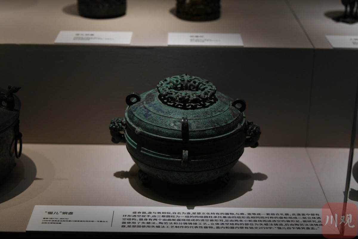 “愠儿”铜盏,春秋(前770—前476),1986年湖南省岳阳市出土,是一种盛食器,盏与敦相似,是楚文化特有的器物。