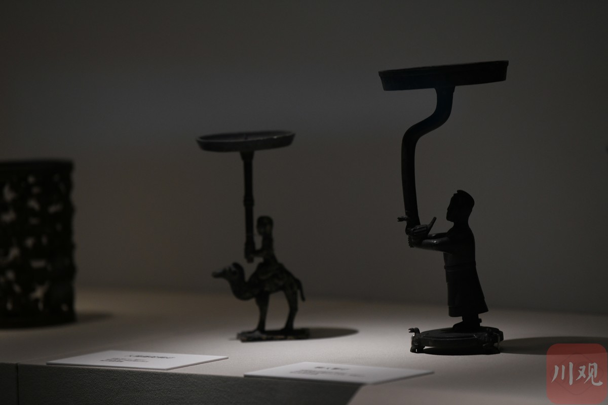 人骑骆驼铜灯(左)和铜人擎灯(右)