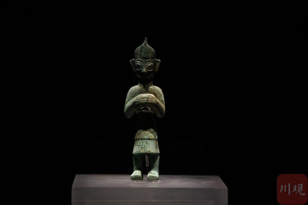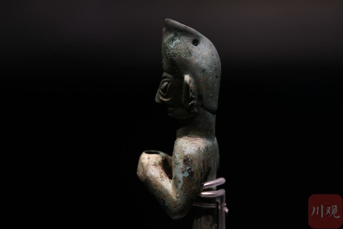 2021年三星堆遗址出土的铜小立人,因外观造型形似“奥特曼”,被网友们取名为“奥特曼”青铜小人