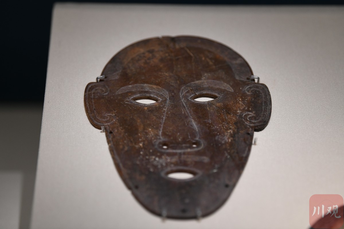 玉覆面,战国(前475—前221),1997年湖北省荆州市出土。椭圆形,黑褐色。覆面四周有8个小圆孔,应缝缀于用丝织品制成的面罩上