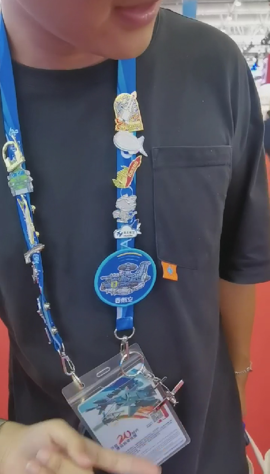 他们的证件绳上缀满了各种飞机徽章,有的甚至手里还拿两条挂绳。