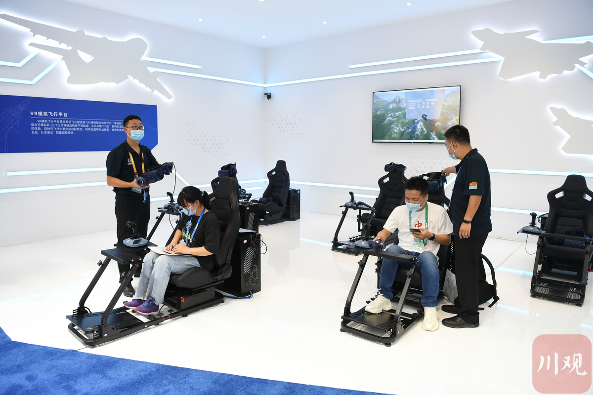 除了歼-20威龙机甲,这里还可以借助VR模拟飞行器,体验驾驶歼-20在不同空域、不同环境下飞行。戴上VR头盔,飞行中需要一边做计算,一边控制方向反击敌方,需要左右脑并用。而事实上,空军飞行员在驾驶舱中,需要同步进行的操作还更多。