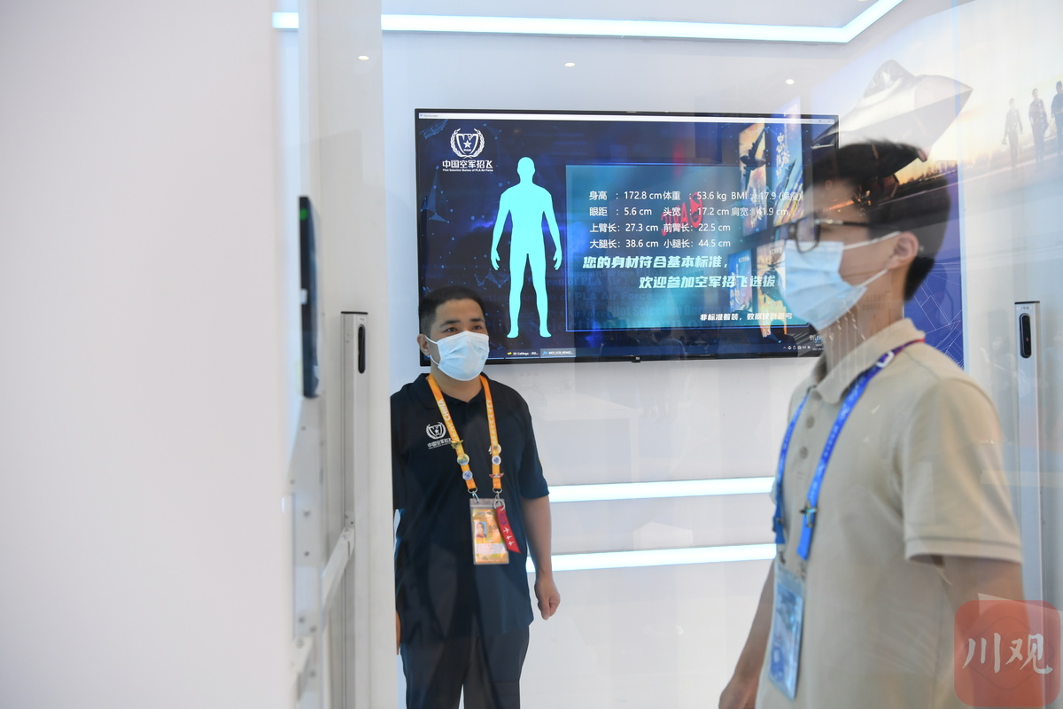 关关难过关关过。飞行员首先要过的是身体关。现场的飞行人员身体围度智能测量系统就是一套黑科技。