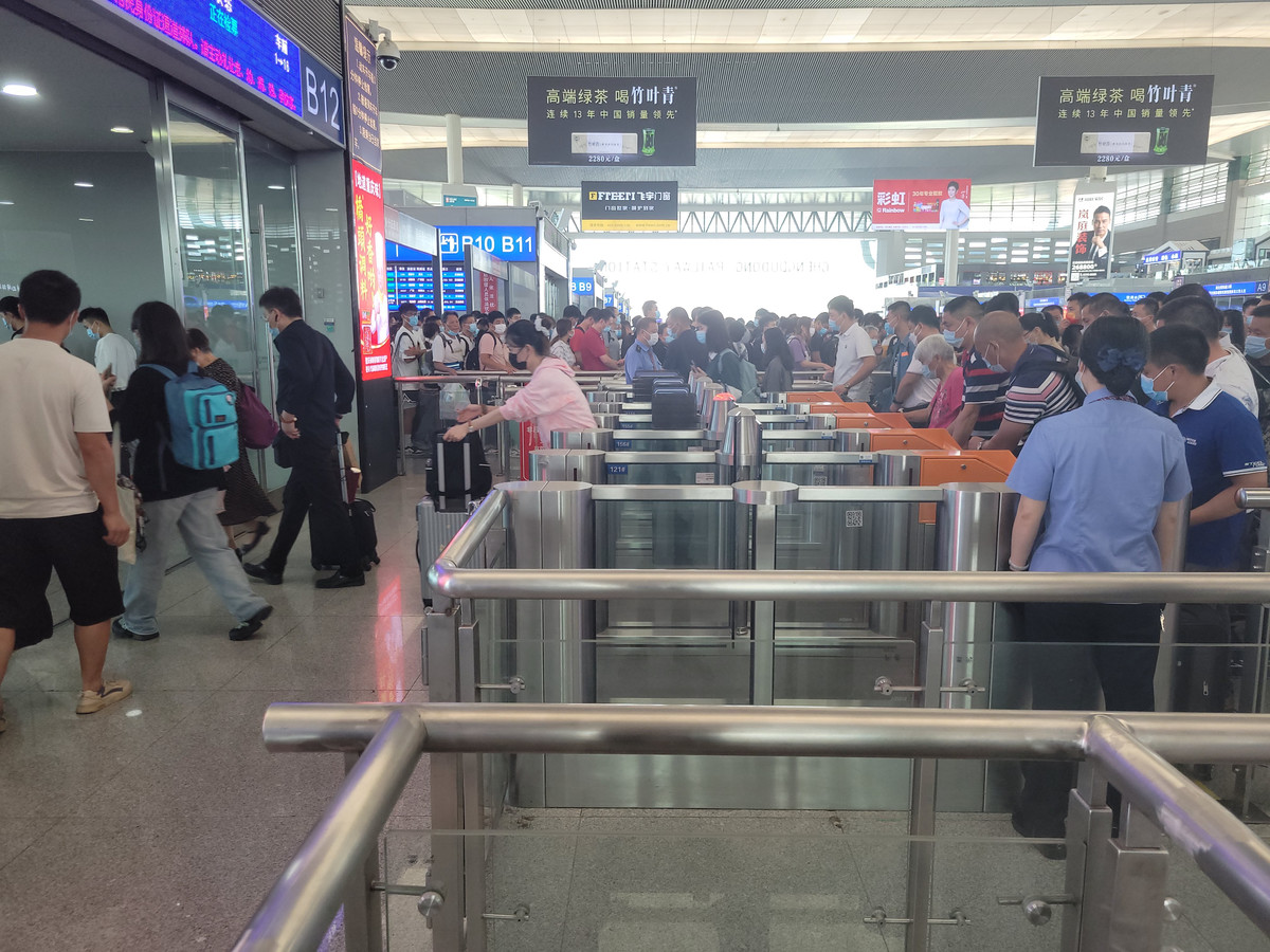 防疫方面,重点对车站候车室、检票口等旅客密集处进行每4小时一次的消杀,对进出站闸机、电梯扶手等旅客易接触点进行人工擦拭消毒,在出站口设置核酸检测点,对外省返乡人员和游玩旅客免费进行核酸检测。同时,动态调整验证验票、安检查危通道,缩短旅客排队等待时间。当乘车旅客多、站停时间短的列车进站时,采用“分段放行”方式控制好旅客流量、流速。