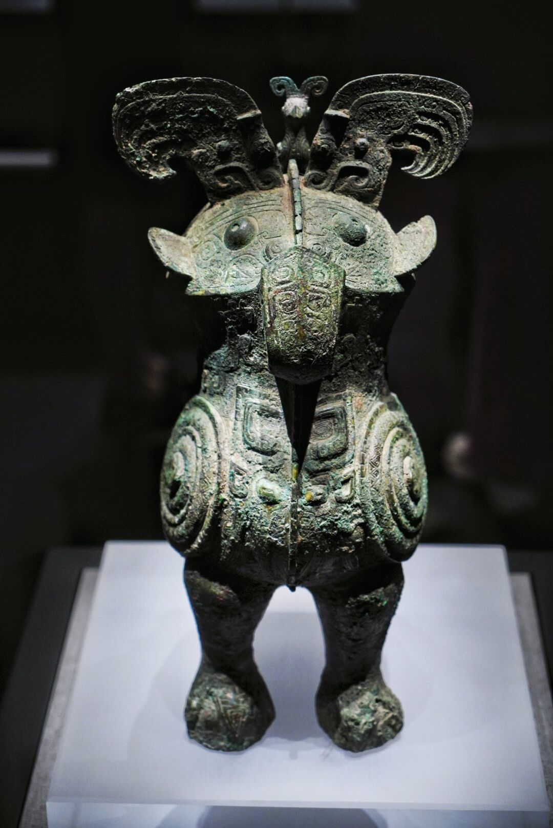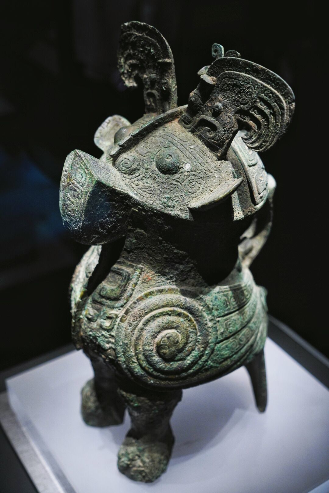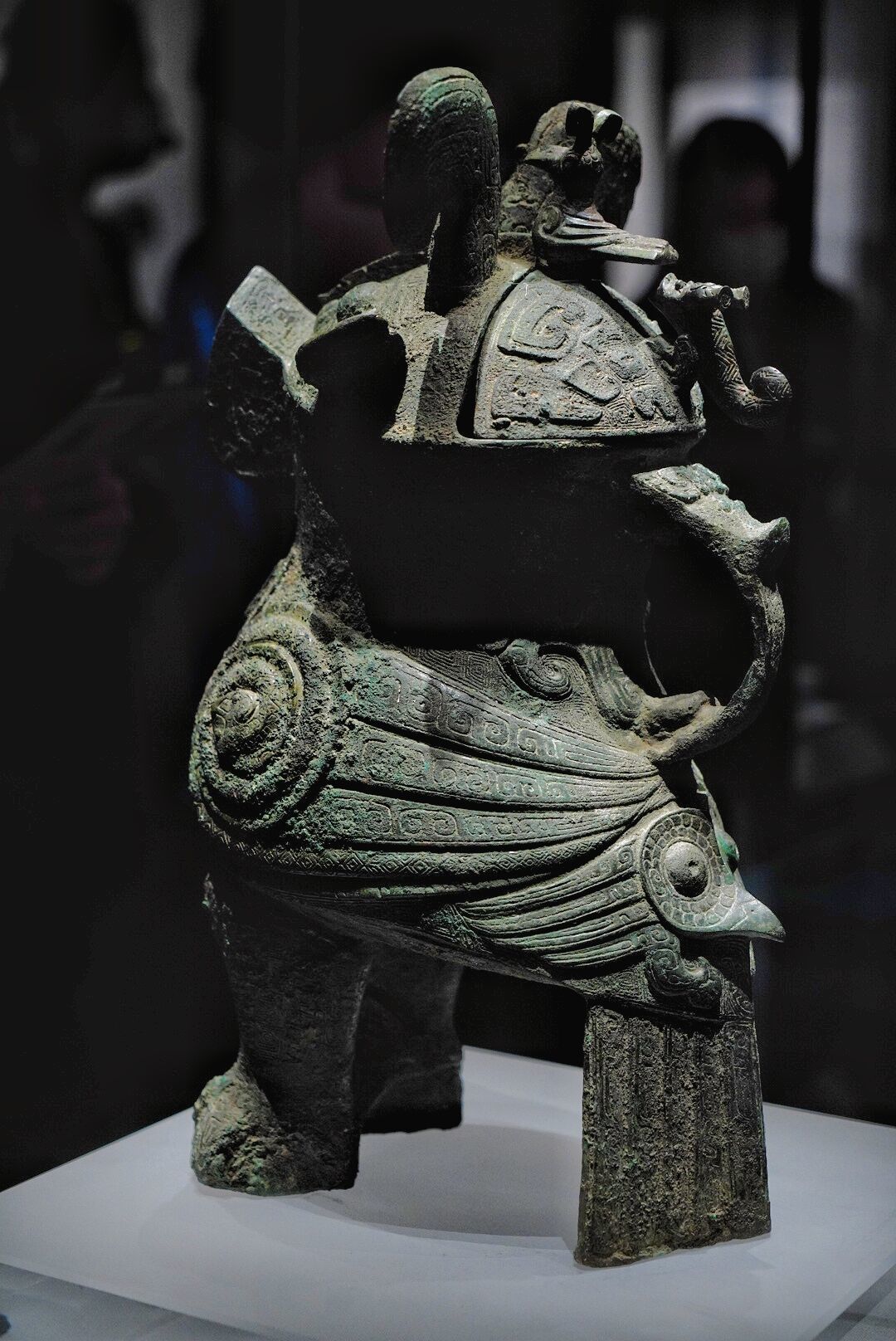 “人们对于鸟的崇拜历来有之,在商代晚期,青铜工艺铸造达到了一个高峰,能够铸造出非常复杂的青铜礼器。这件器物可谓融合了商代晚期青铜器纹饰的集大成,融入先民丰富的想象力,蕴含着一种神秘之美,也代表着商代晚期一种审美风尚。”