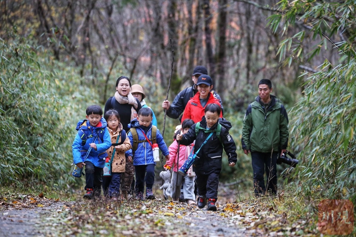 大熊猫国家公园唐家河片区组织中小学生,开展森林研学教育活动。