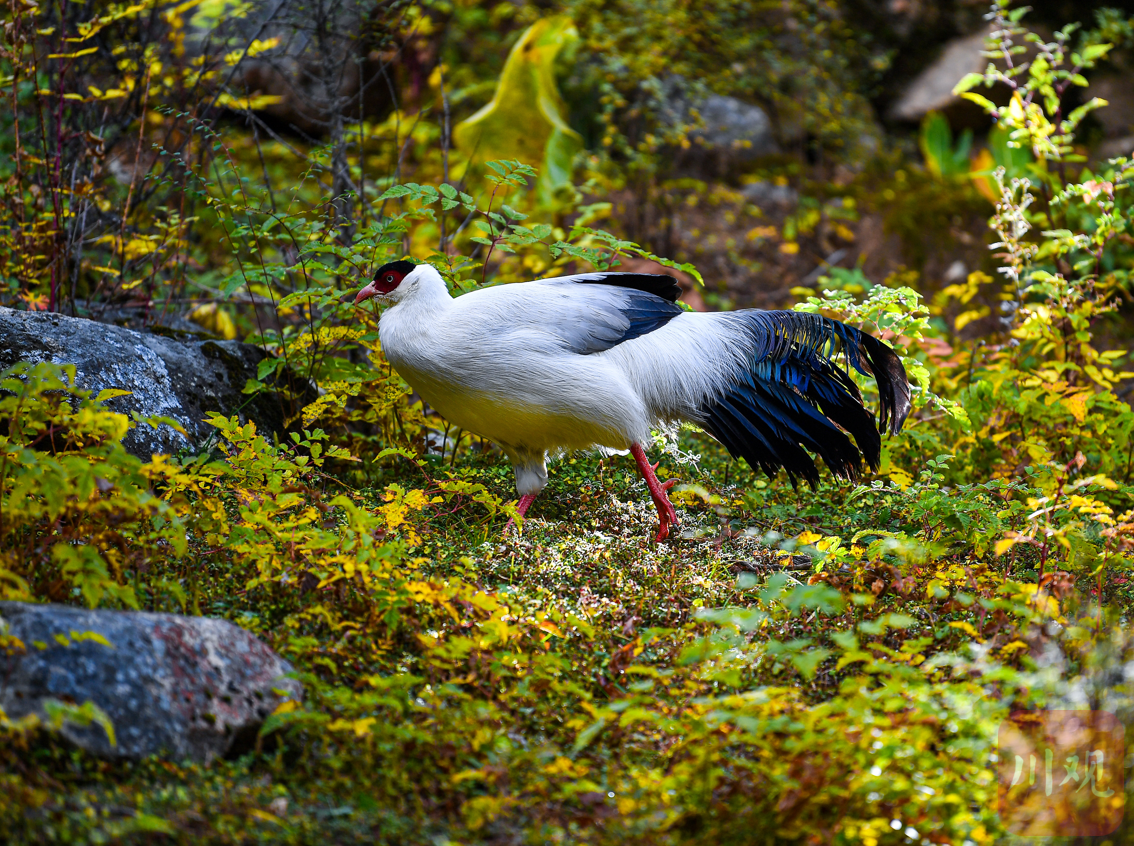 在森林中生活的白马鸡。