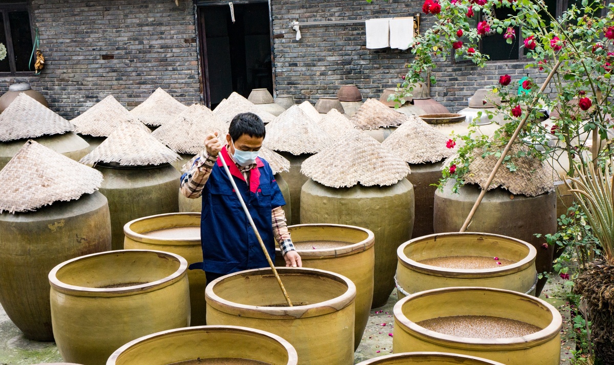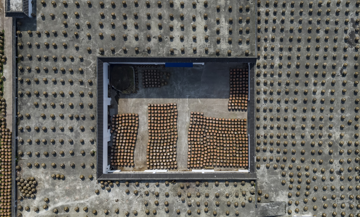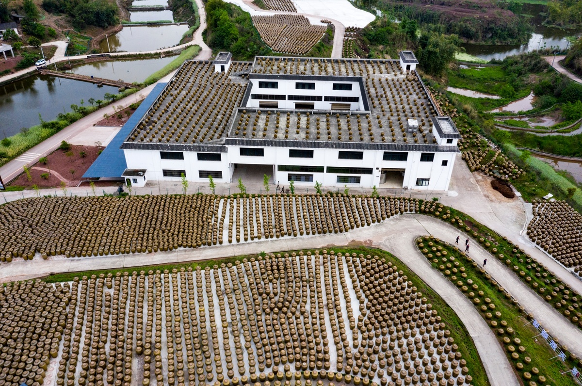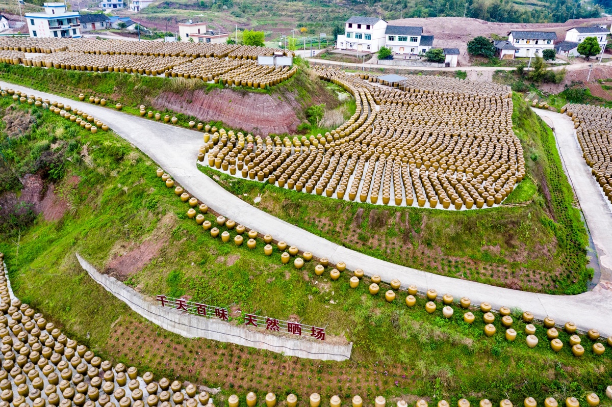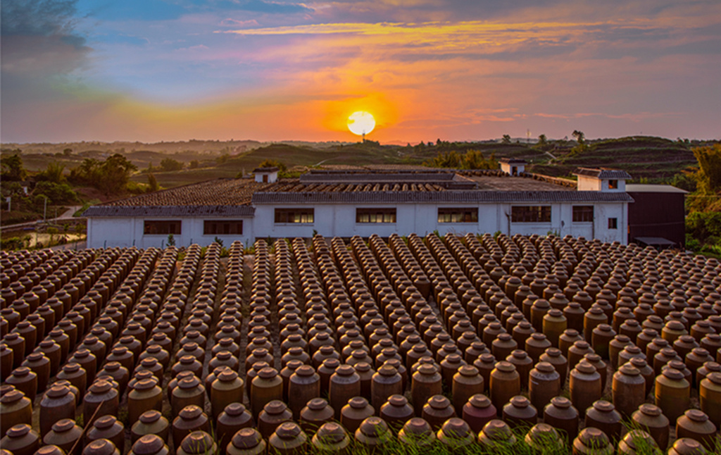 这里是自贡市非物质文化遗产——“千天百味” 晒醋天然晒场。预计到2024年,当地将依托这2万多个"醋坛子",建成千天百味晒醋博物馆和非遗文化广场,以宣传晒醋产业优势,推动自贡地区晒醋产业发展,展示、保护、传承晒醋技艺这项非物质文化遗产,建成生产性保护基地。