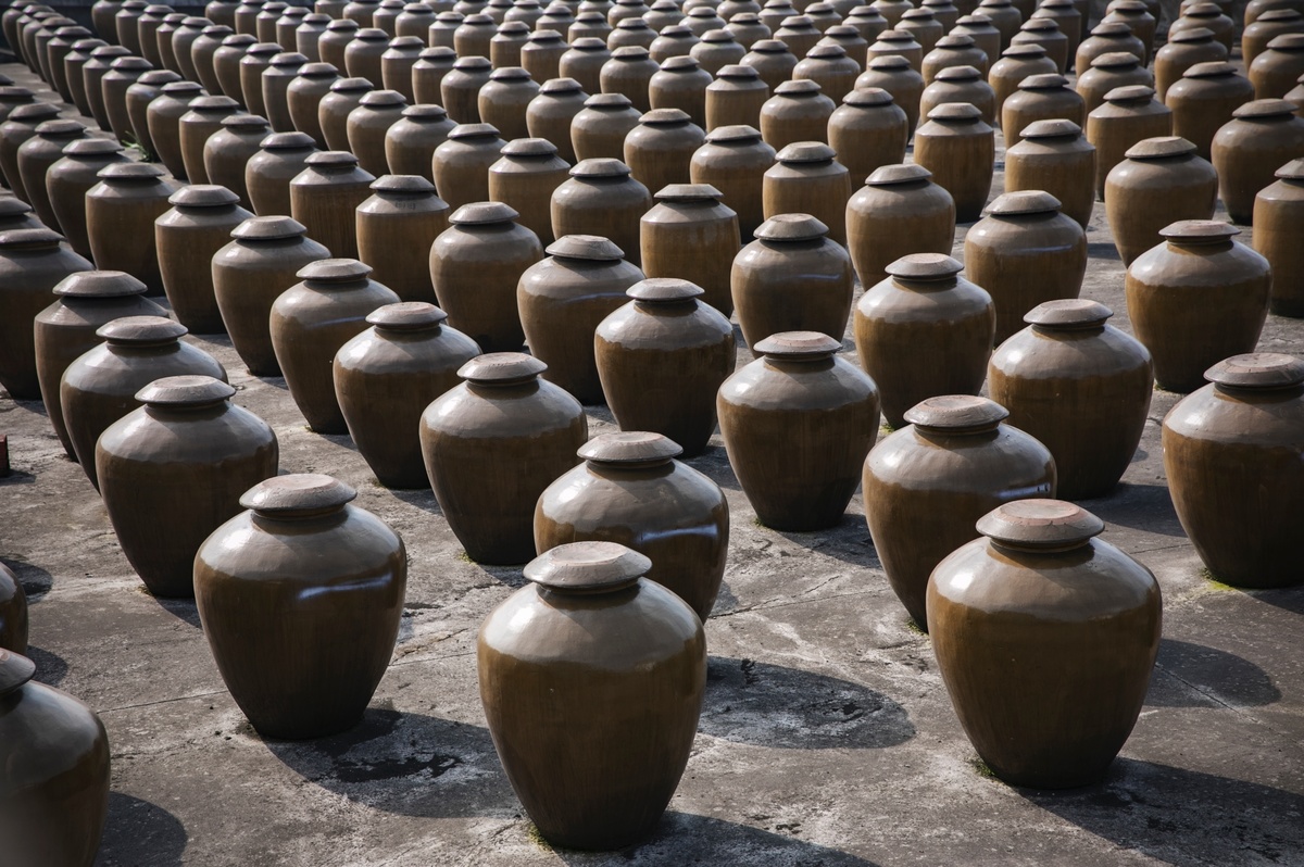 在自贡市富顺县狮市古镇马安村的沱江东岸,有一道奇特的风景:2万多个传统晒醋陶缸,星罗棋布排列在面积达1000亩的山间丘陵中,蔚为壮观。而晒醋发酵所散发的缕缕麦香扑鼻而来,沁人心脾。