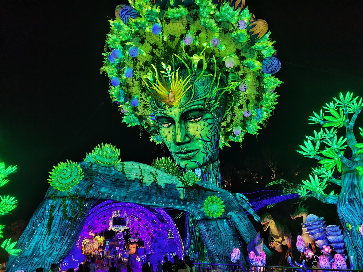 《国泰民安》灯区以“复兴传统文化”为目标,推出各类国风主题元素灯组;《故里乡愁》将星河流淌之美景与盐街灯市相组合,把千年盐都波澜壮阔的历史篇与悠悠人间烟火气合二为一;《山河无恙》再现华夏大地古都名城场景;《梦幻时光》为灯会游览尾声区段,是一个充满创意与想象的空间。