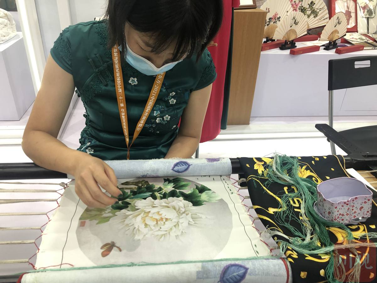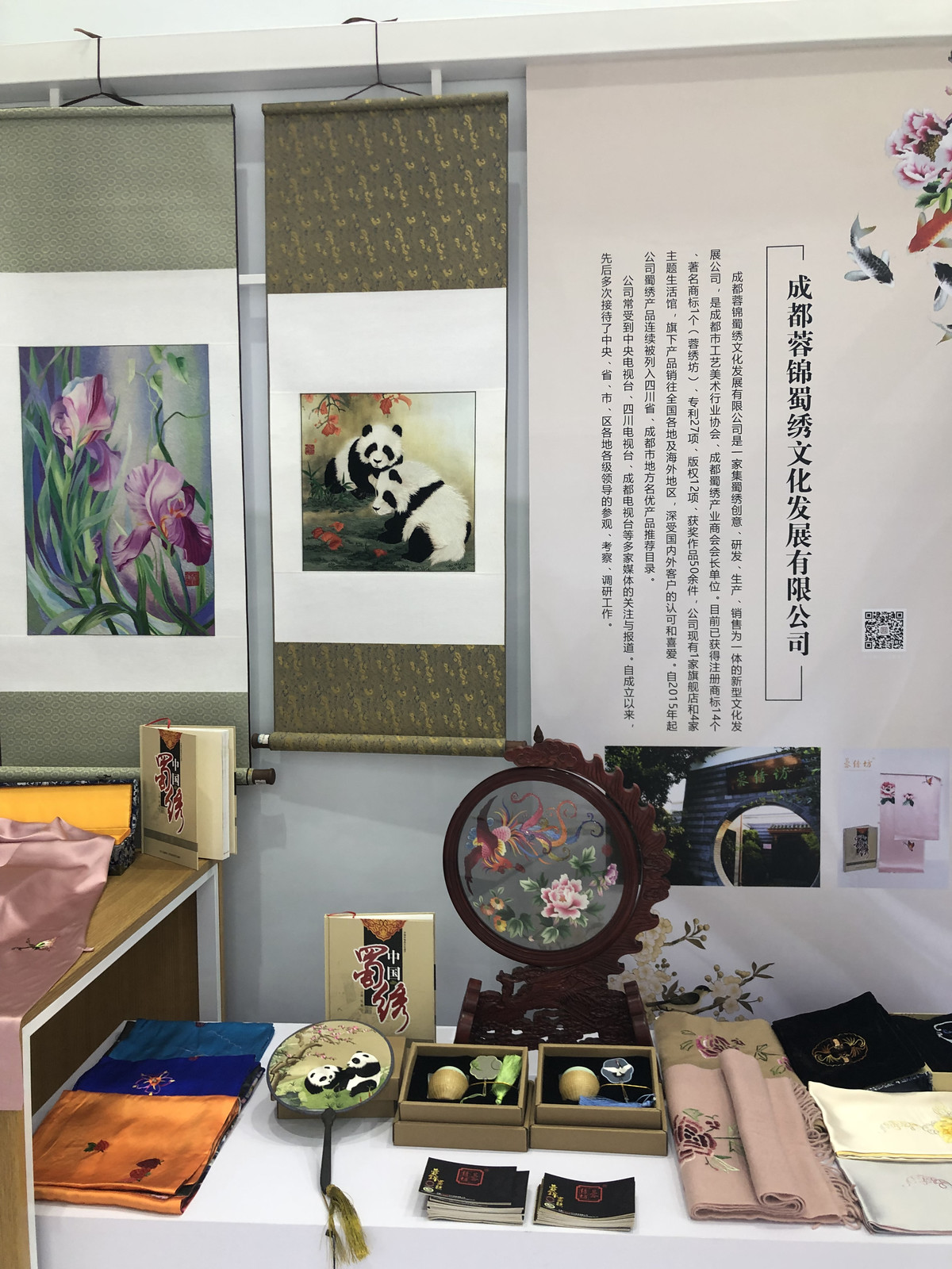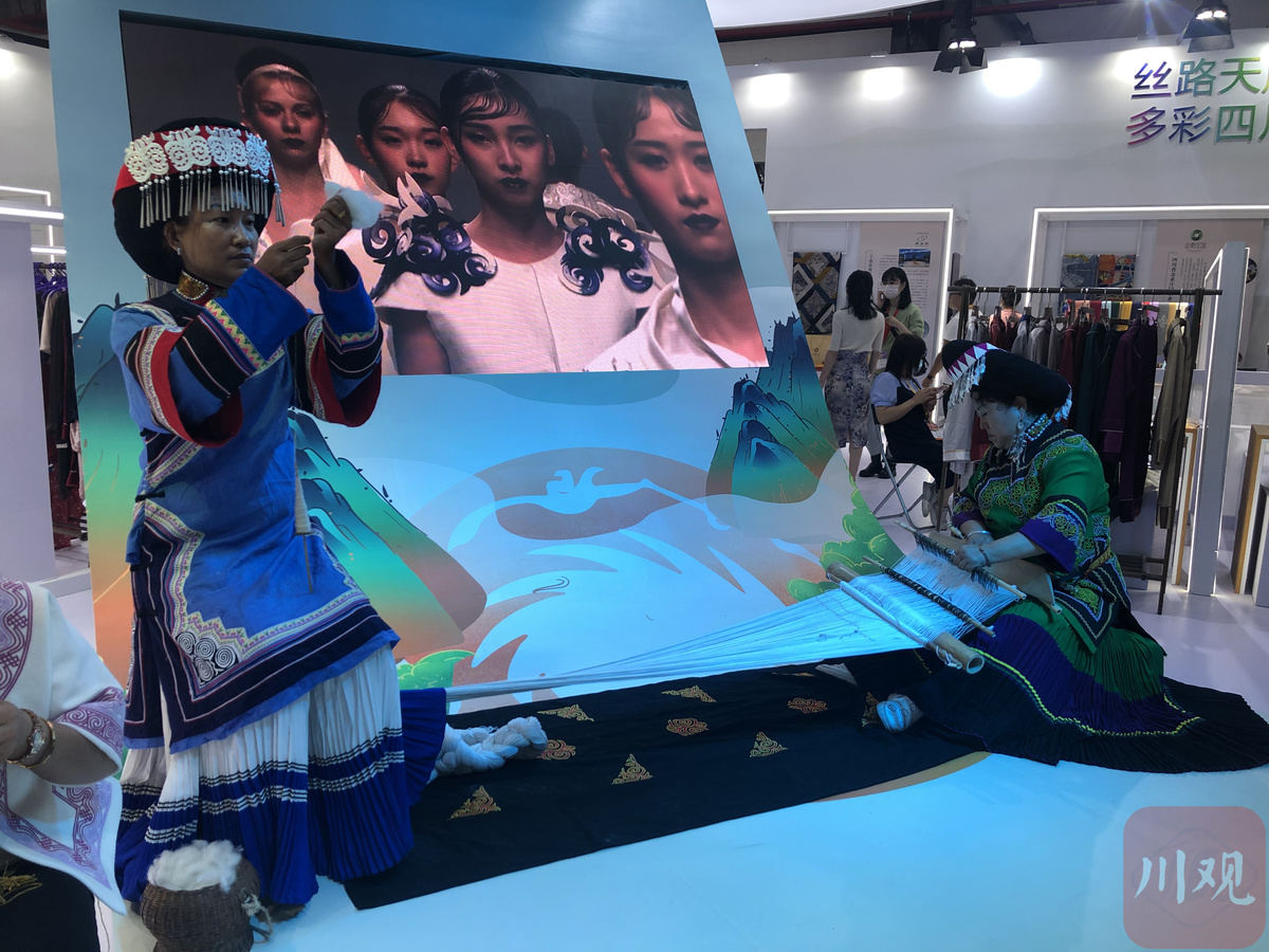 “四川丝绸”馆一经亮相,以蜀绣熊猫、彝绣等为代表的极具四川元素的产品吸引了众人围观,特别是蜀绣彝绣等刺绣现场演示、汉服和少数民族服饰等时尚走秀、桑叶茶桑果汁等饮品品鉴等,极具体验感和互动性。此次参展企业中,既有蚕丝等生产原料企业和加工制造企业,又有蜀锦蜀绣技艺传承和文创企业,以及四川省丝绸科学研究院等科研院所,充分展示了四川丝绸产业的全链条式发展。