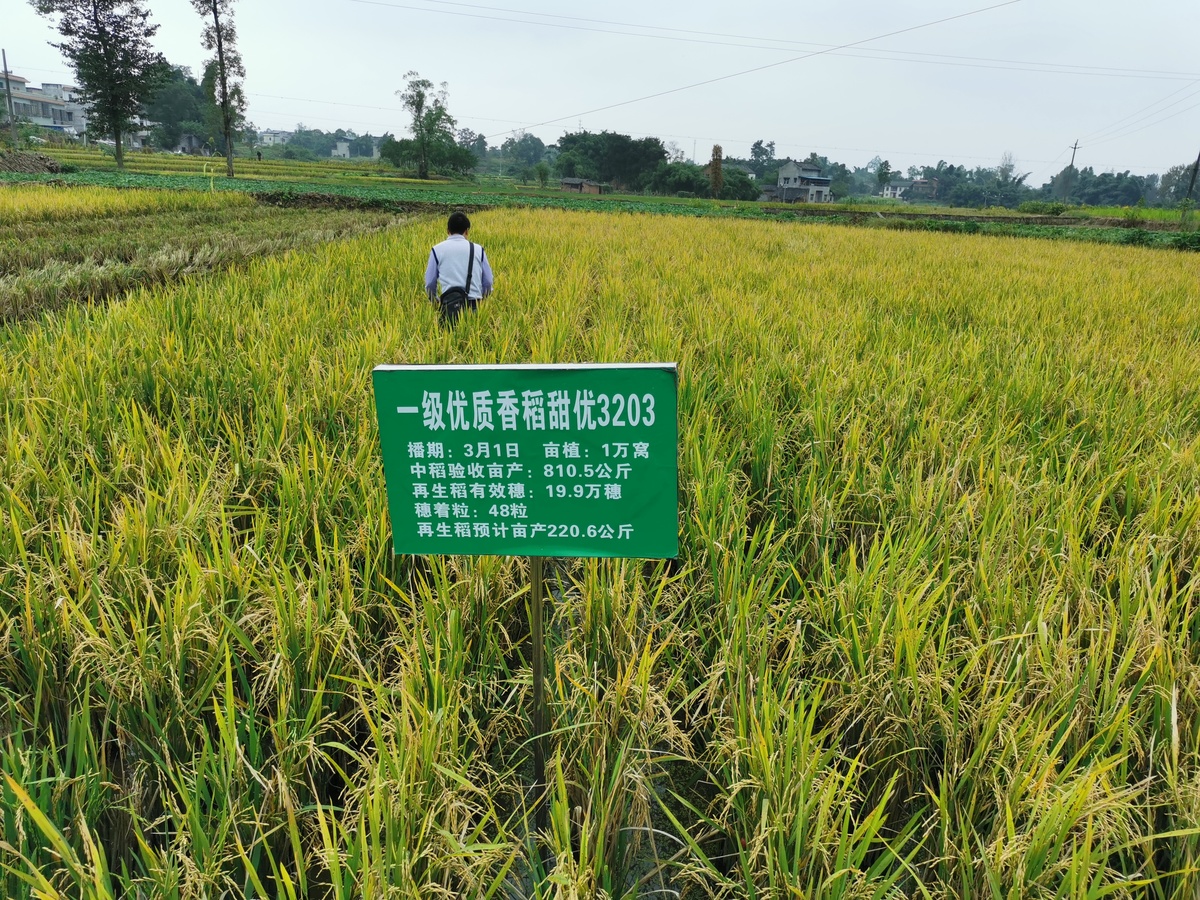 “今年农业主管部门、农业科技工作者、种植户等在品种选择、田间管理、技术培训等方面共同发力,增产增收明显。”内江市农科院水稻研究所所长陈勇表示,下一步将与重庆市农科院、四川省农科院共同研讨再生稻高质量发展的课题,助力成渝地区双城经济圈优质粮油供给。(受访者供图)