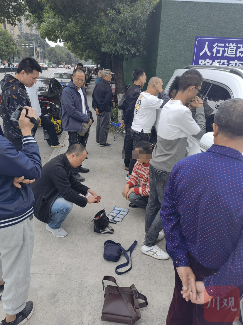 随后,警方周密部署打击整治工作,于10月11日抽调精干警力,现场挡获12名公开倒卖驾驶证记分的违法嫌疑人,并根据审查线索继续追踪,于次日上午从自贡市挡获1名同案人员,成功打掉一个公开倒卖驾驶证记分的违法团伙,依法打击处理13名“分串串”。