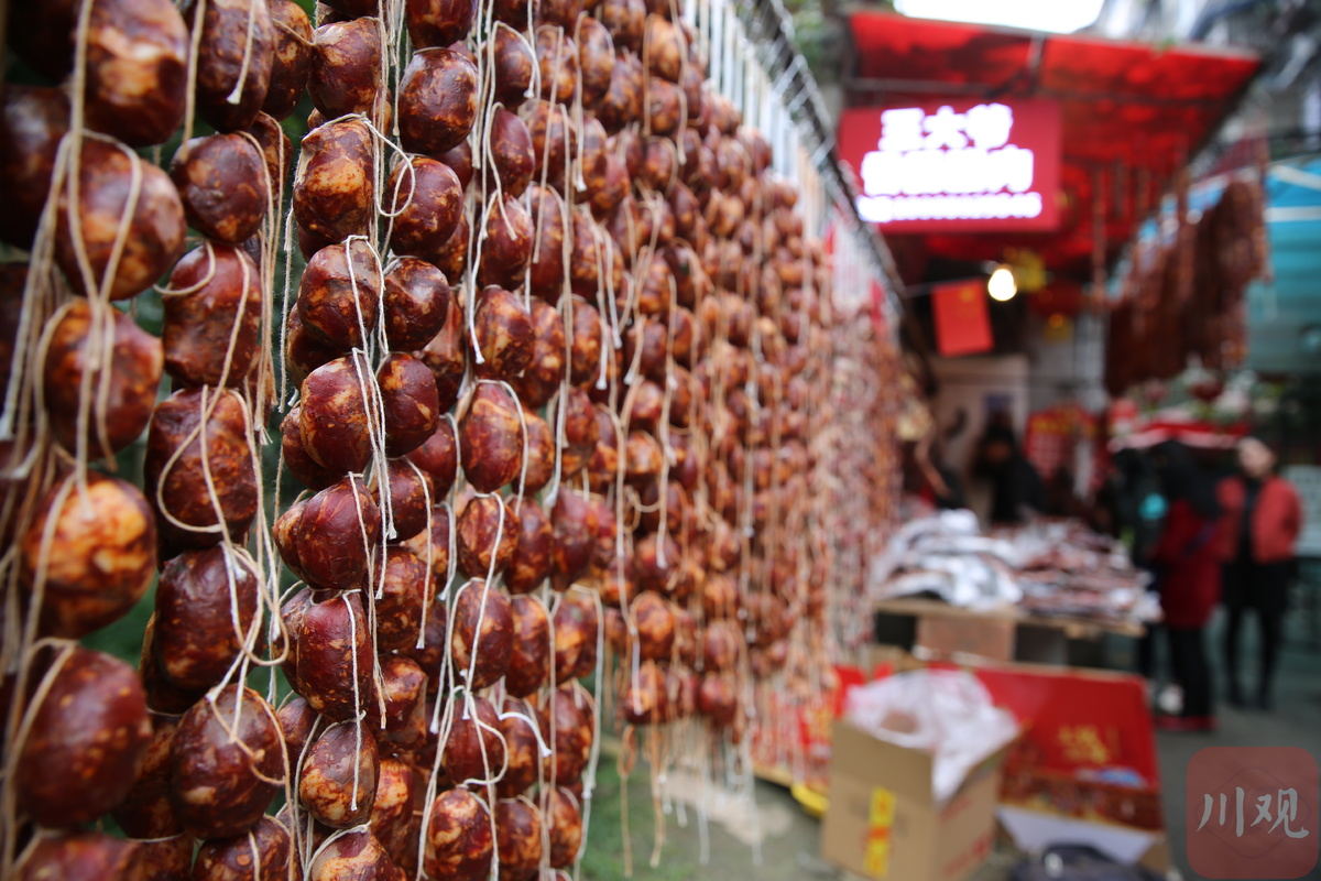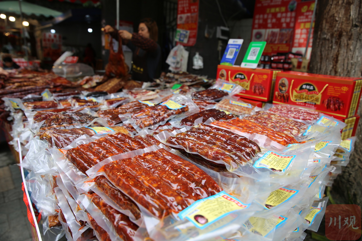 不过,虽然今年的立冬未到,但不管是在号称“成都香肠一条街”的新开寺街,还是相邻的玉泉街,街道两旁的肉铺早已挂满了腊肉香肠。